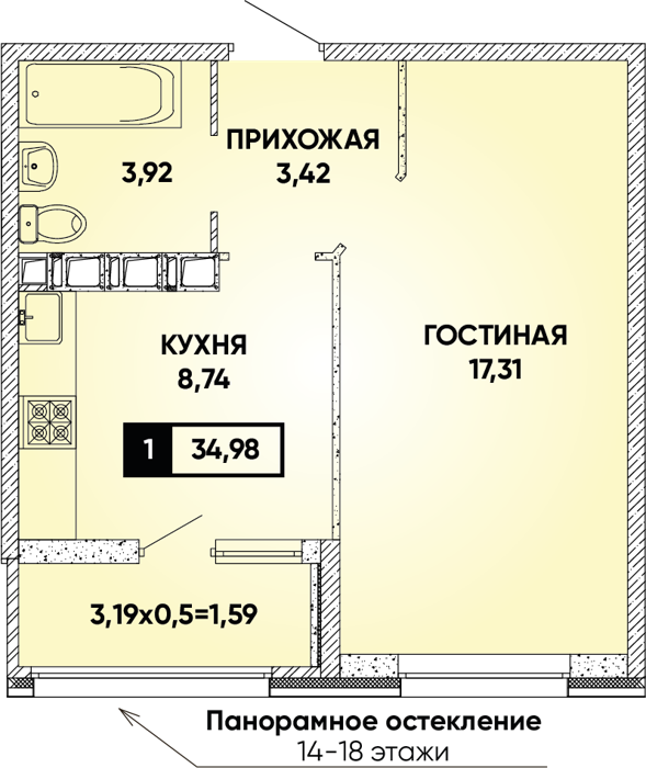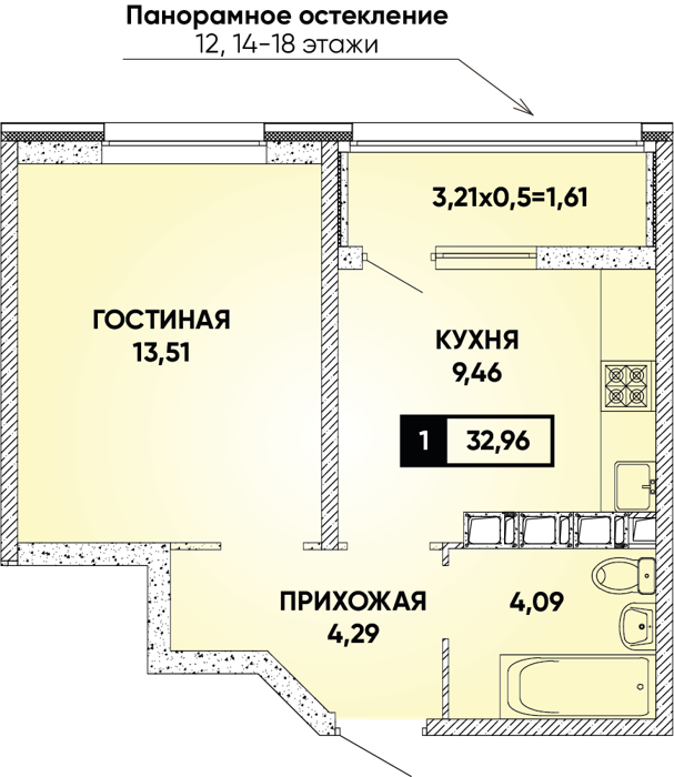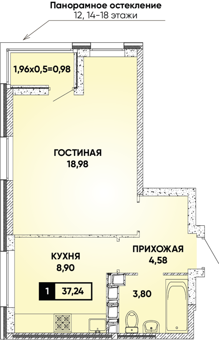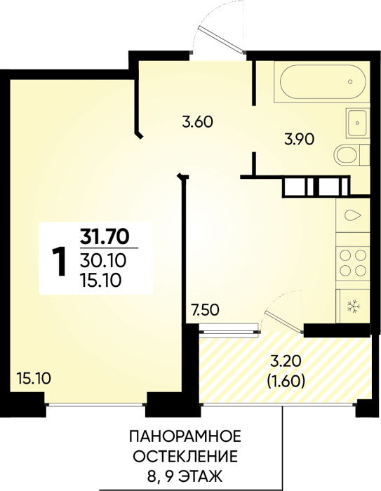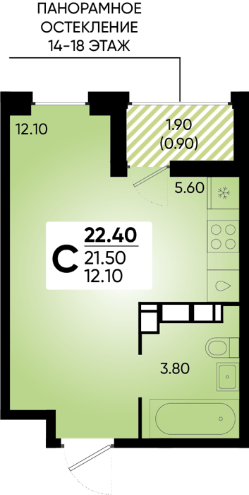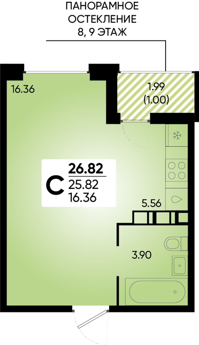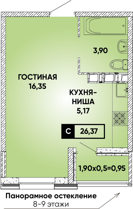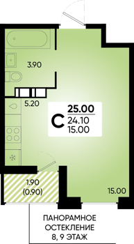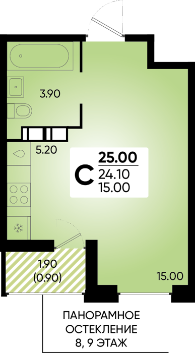 Рассрочка сдача I квартал 2026г 1 комната от 24.5 до 32.1 м2 от 6,7 до 7,4 млн. руб