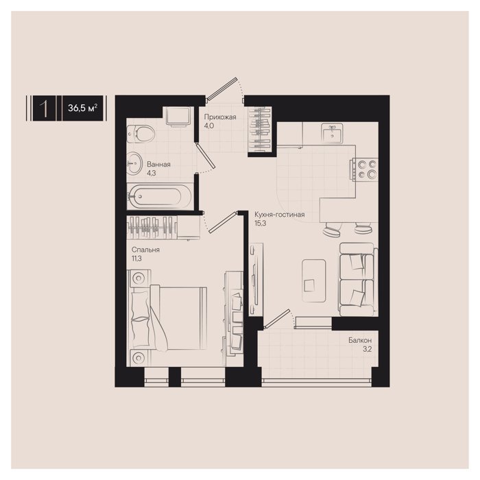 Рассрочка сдача I квартал 2026г 1 комната от 24.5 до 32.1 м2 от 6,7 до 7,4 млн. руб