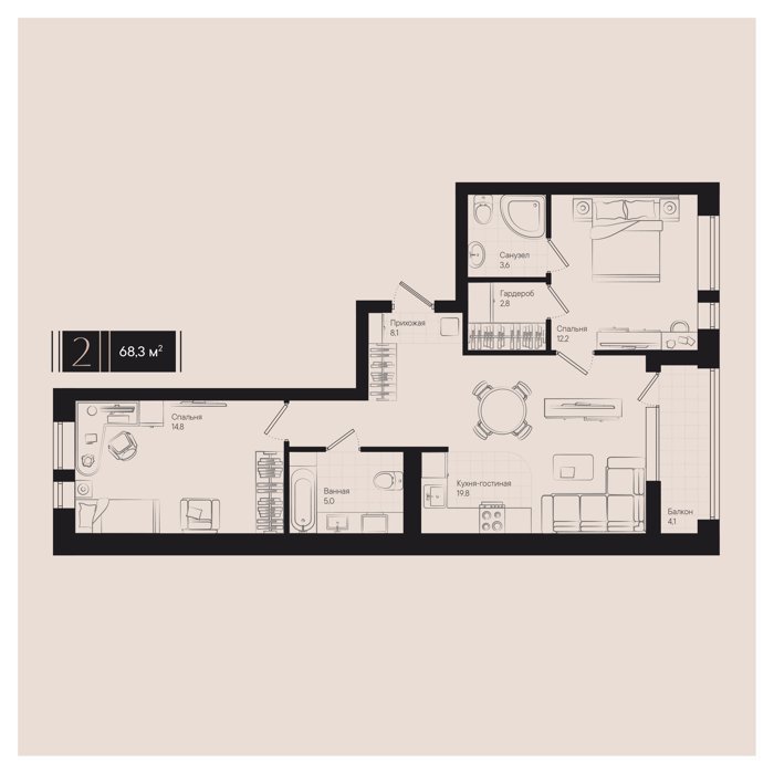 Рассрочка сдача IV квартал 2025г 1, 2, 3, 5 комнат от 24.7 до 98.1 м2 от 6,0 до 25,4 млн. руб