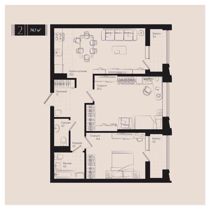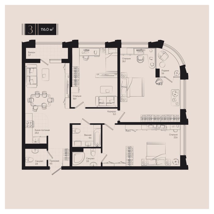 сдача III квартал 2025г 1, 2, 3, 4 комнаты от 35.3 до 235 м2 от 10,6 до 73,6 млн. руб