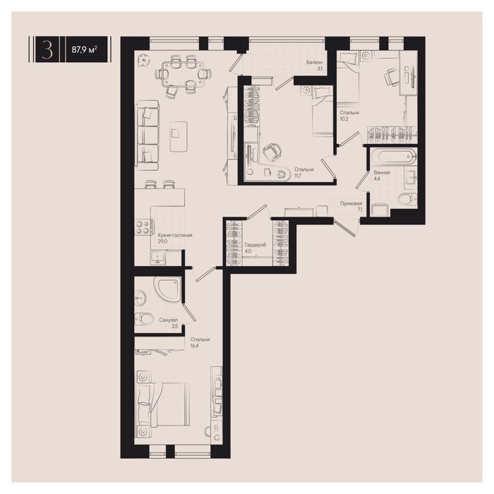 сдача IV квартал 2026г 1, 2, 3 комнаты от 35.4 до 105.7 м2 от 7,1 до 16,4 млн. руб