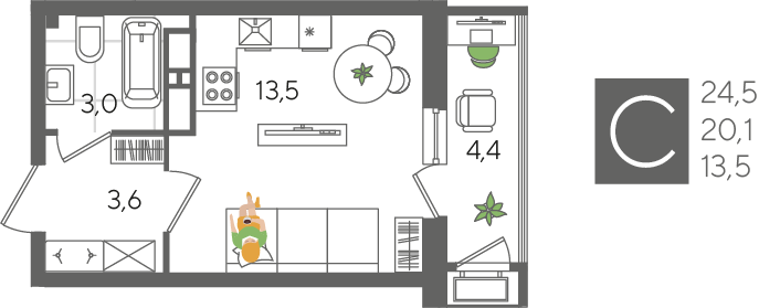 Рассрочка сдача IV квартал 2025г 1, 2, 3, 5 комнат от 24.7 до 98.1 м2 от 6,0 до 25,4 млн. руб
