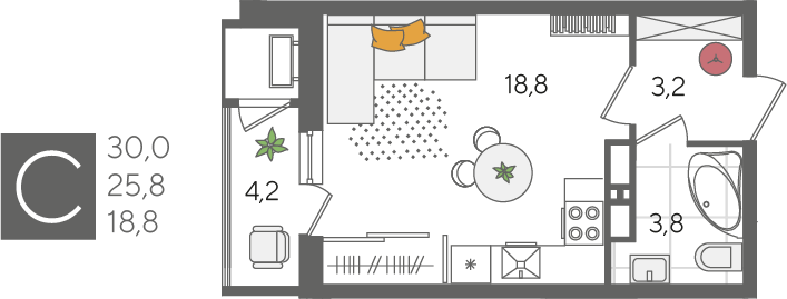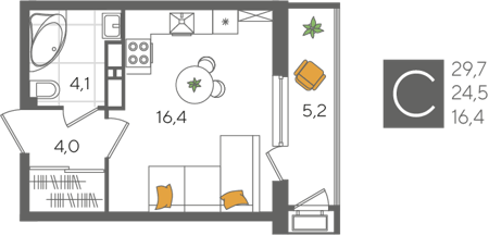 сдача IV квартал 2025г 1, 2, 3 комнаты от 22.4 до 89.8 м2 от 6,9 до 26,8 млн. руб