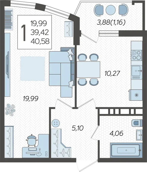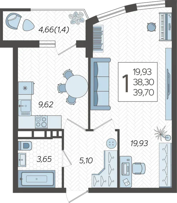Рассрочка сдача I квартал 2026г 1 комната от 24.5 до 32.1 м2 от 6,7 до 7,4 млн. руб