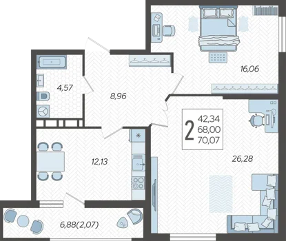 Рассрочка сдача IV квартал 2026г 1, 2, 3 комнаты от 22 до 80 м2 от 4,0 до 10,6 млн. руб