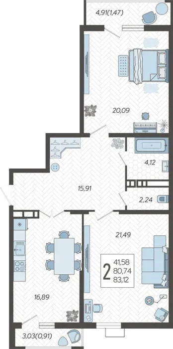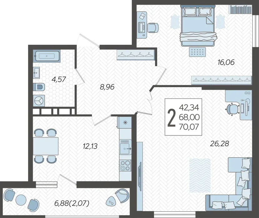 сдача IV квартал 2025г 1, 2, 3 комнаты от 22.4 до 89.8 м2 от 6,9 до 26,8 млн. руб