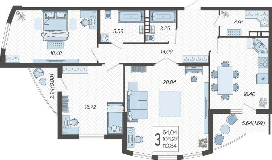 сдача IV квартал 2026г 1, 2, 3 комнаты от 35.4 до 105.7 м2 от 7,1 до 16,4 млн. руб