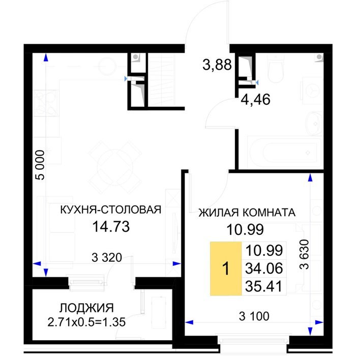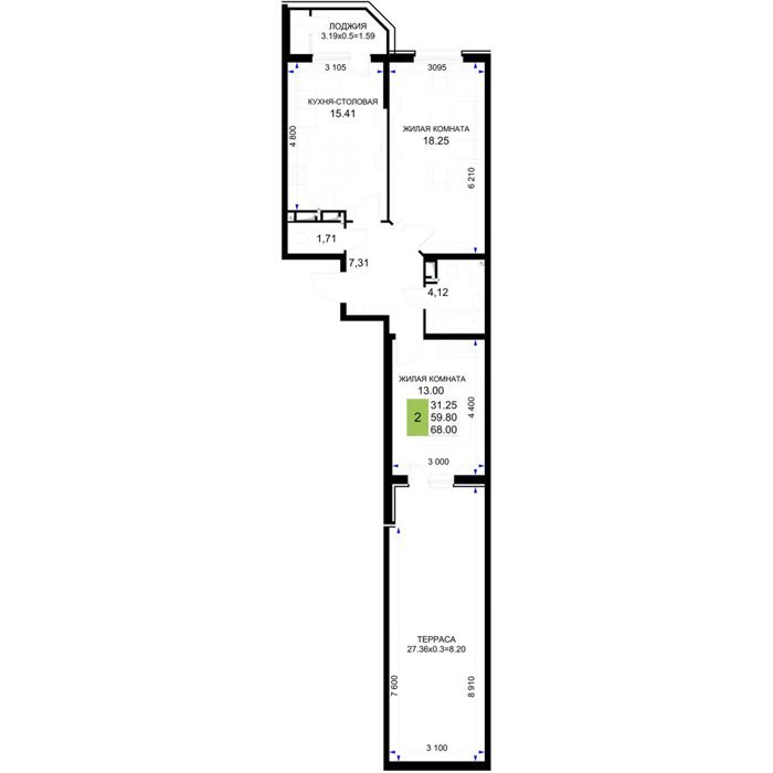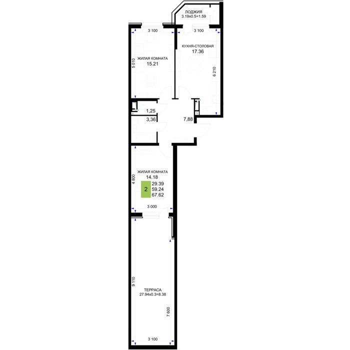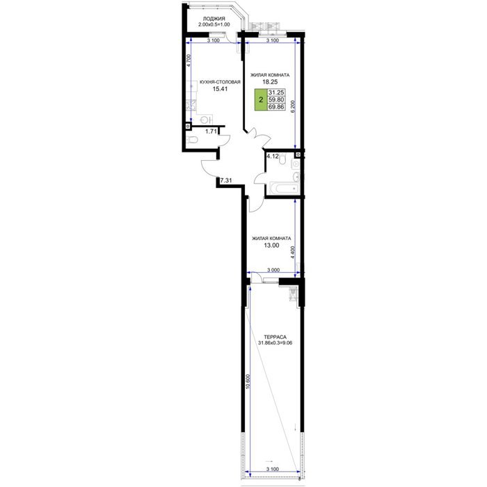 Рассрочка сдача I квартал 2026г 1 комната от 24.5 до 32.1 м2 от 6,7 до 7,4 млн. руб