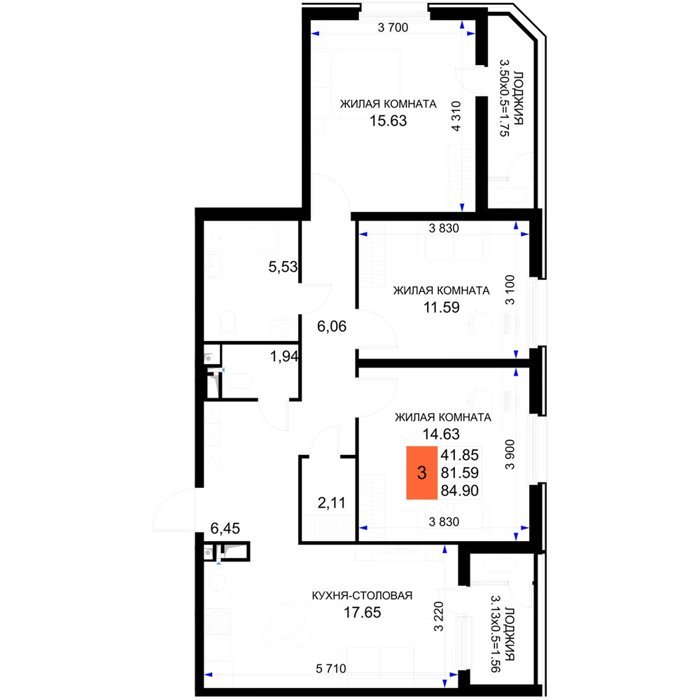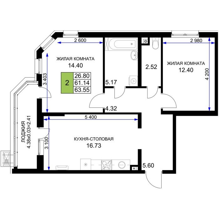 Рассрочка сдача I квартал 2026г 1, 2, 3, 5 комнат от 39.7 до 194.1 м2 от 7,6 до 27,8 млн. руб